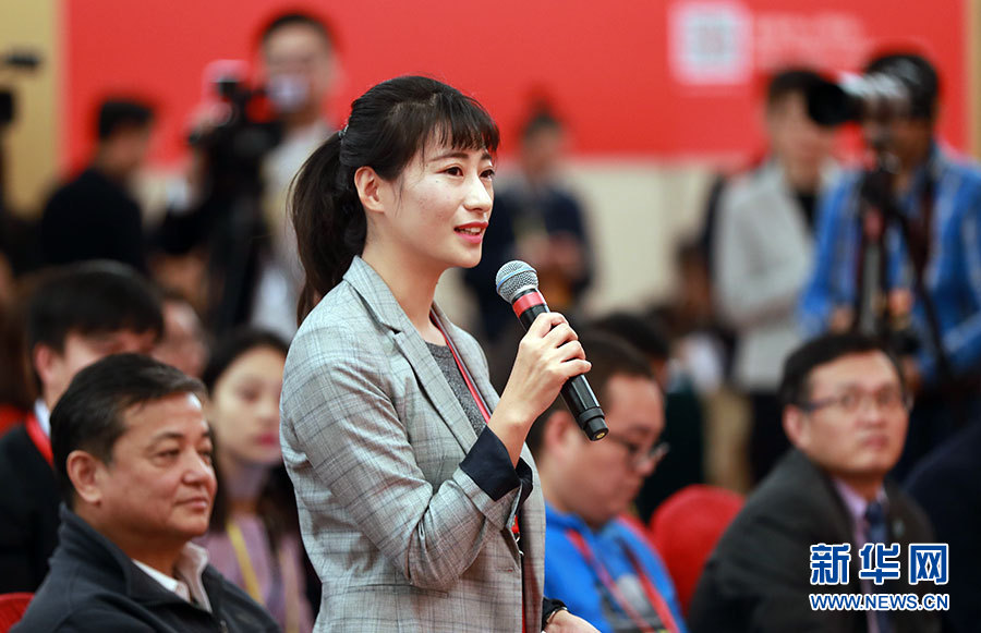 10月23日,十九大新聞中心舉辦記者招待會,邀請中央財(cái)經(jīng)領(lǐng)導(dǎo)小組辦公室副主任楊偉民,環(huán)境保護(hù)部黨組書記、部長李干杰介紹踐行綠色發(fā)展理念,建設(shè)美麗中國有關(guān)情況,并回答記者提問。圖為中華合作時(shí)報(bào)記者提問。新華網(wǎng) 郝廣鵬攝