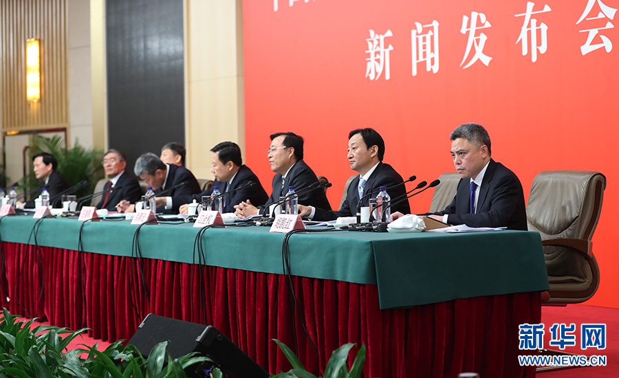 10月26日上午10:00,中國共產(chǎn)黨第十九次全國代表大會新聞發(fā)言人在梅地亞賓館二層新聞發(fā)布廳召開專題新聞發(fā)布會,請有關(guān)方面負(fù)責(zé)人解讀十九大報告,并回答記者關(guān)心的問題。圖為新聞發(fā)布會現(xiàn)場。新華網(wǎng)?翟子赫 攝