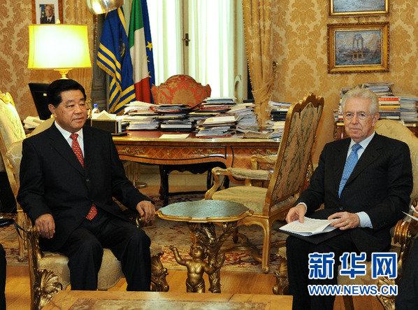 賈慶林會(huì)見(jiàn)意大利總理蒙蒂
