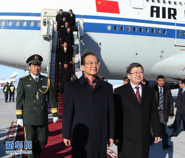 溫家寶抵達(dá)比什凱克出席上合組織成員國(guó)總理會(huì)議并正式訪問吉爾吉斯斯坦