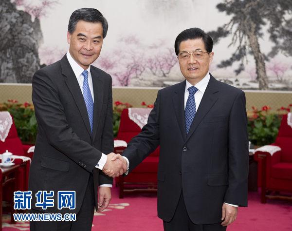 新華網(wǎng)北京12月21日電(記者李寒芳)國家主席胡錦濤21日下午在中南海會見了來京述職的香港特別行政區(qū)行政長官梁振英,聽取了他對香港當(dāng)前形勢和特區(qū)政府工作情況的匯報(bào)。