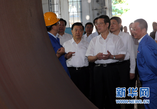 ??? 這是7月4日,張高麗來到甘肅蘭州蘭石集團(tuán)有限公司車間考察企業(yè)的生產(chǎn)經(jīng)營情況。 新華社記者劉衛(wèi)兵攝