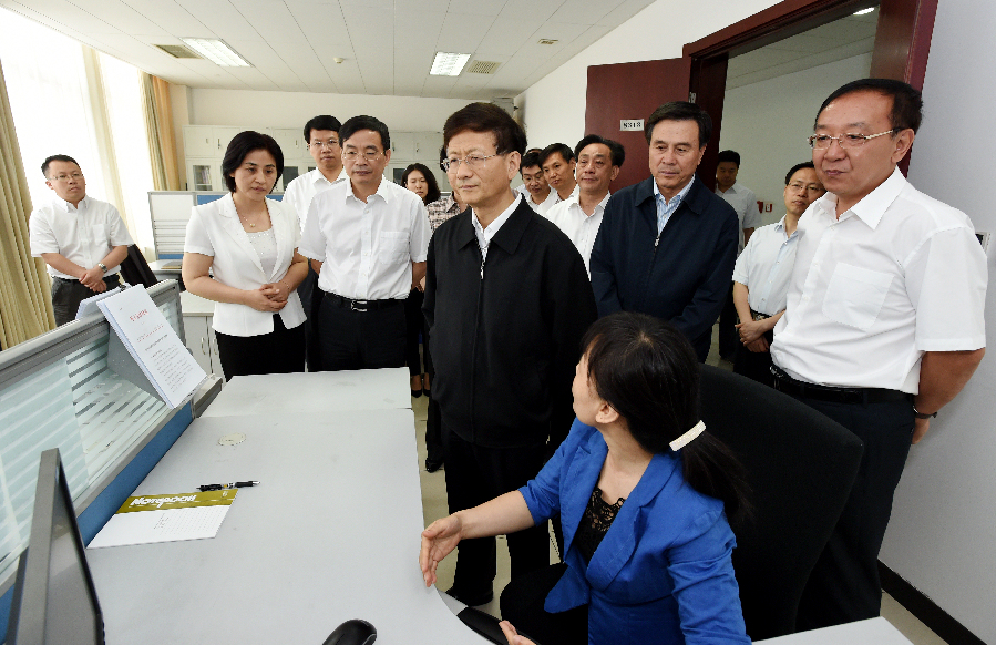 5月27日,中共中央政治局委員、中央政法委書(shū)記孟建柱在國(guó)家信訪(fǎng)局調(diào)研。圖為孟建柱查看國(guó)家信訪(fǎng)信息系統(tǒng)運(yùn)行情況。