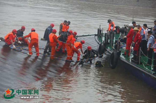 海軍工程大學(xué)潛水分隊(duì)接到救援命令后火速出發(fā),奔赴事發(fā)地點(diǎn)。第一批13名潛水員及一名醫(yī)生,于2日11時(shí)20分到達(dá)救援現(xiàn)場(chǎng),11時(shí)30分下水展開救援。第二批3名潛水員及一名潛水醫(yī)生,于14時(shí)30分到達(dá)救援現(xiàn)場(chǎng)。