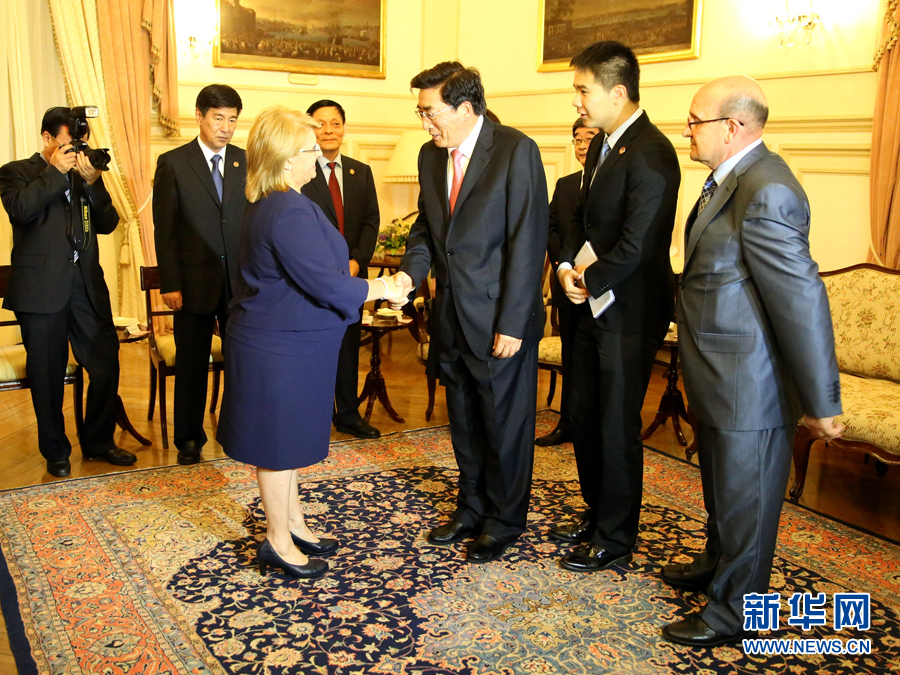 ??? 6月16日,在馬耳他首都瓦萊塔的總統(tǒng)府,郭金龍會見馬耳他總統(tǒng)普雷卡(前左一)。應邀對馬耳他進行友好訪問的中共中央政治局委員、北京市委書記郭金龍16日在瓦萊塔分別會見馬耳他總統(tǒng)普雷卡和總理、工黨領袖穆斯卡特?! ⌒氯A社記者李佳攝