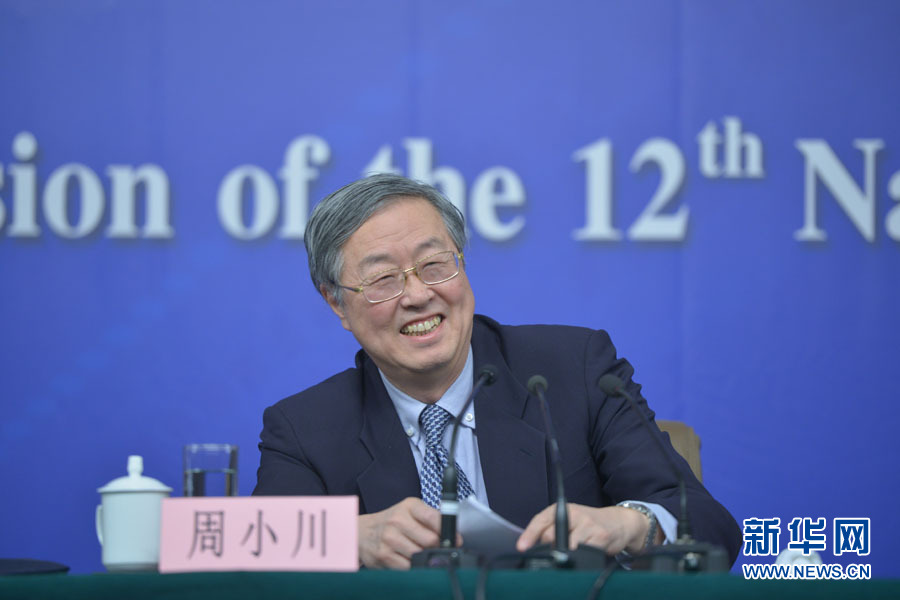 ????十二屆全國人大三次會議新聞中心于3月12日在梅地亞中心多功能廳舉行記者會,邀請中國人民銀行行長周小川,中國人民銀行副行長、國家外匯管理局局長易綱,中國人民銀行副行長潘功勝,絲路基金有限責任公司董事長金琦就金融改革與發(fā)展回答中外記者提問。圖為中國人民銀行行長周小川回答記者提問。新華網/中國政府網 郭小天攝