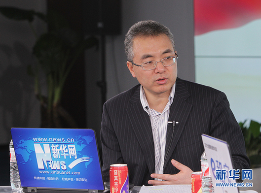 2015年3月13日,中國(guó)人民銀行金融研究所所長(zhǎng)姚余棟做客新華網(wǎng)2015全國(guó)兩會(huì)特別訪談。圖為姚余棟回答問題。 新華網(wǎng) 郭 研 攝