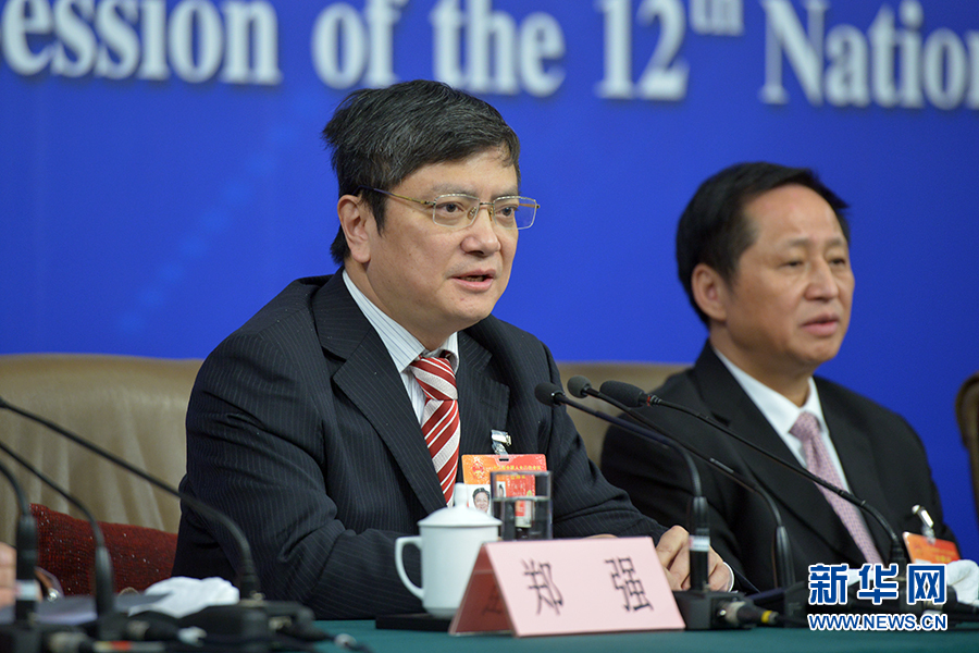 ????3月13日上午10時(shí),十二屆全國(guó)人大三次會(huì)議新聞中心邀請(qǐng)四川大學(xué)校長(zhǎng)謝和平、江蘇省教育廳廳長(zhǎng)沈健、廣東省教育廳廳長(zhǎng)羅偉其、海南大學(xué)校長(zhǎng)李建保、貴州大學(xué)校長(zhǎng)鄭強(qiáng)就完善高等教育治理結(jié)構(gòu)的相關(guān)問題回答中外記者提問。圖為貴州大學(xué)校長(zhǎng)鄭強(qiáng)答記者問。新華網(wǎng)/中國(guó)政府網(wǎng) 郭小天 攝