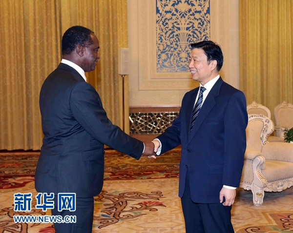 6月15日,國(guó)家副主席李源潮在北京人民大會(huì)堂會(huì)見塞拉利昂外交與國(guó)際合作部長(zhǎng)卡馬拉。 新華社記者劉衛(wèi)兵攝