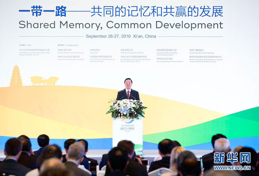??? 9月26日,2016“一帶一路”國(guó)際研討會(huì)在西安召開(kāi),中共中央政治局委員、中央書(shū)記處書(shū)記、中宣部部長(zhǎng)劉奇葆出席研討會(huì),發(fā)表題為《促進(jìn)民心相通 實(shí)現(xiàn)合作共贏》的主旨演講。新華社記者 丁林 攝