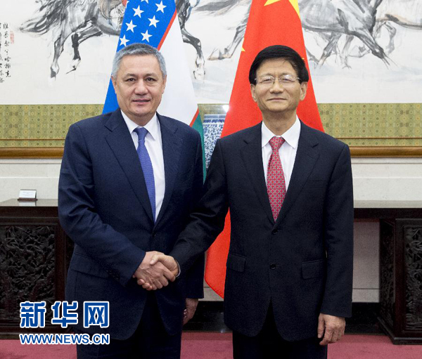 中共中央政治局委員、中央政法委書(shū)記、中烏政府間合作委員會(huì)中方主席孟建柱20日在京同烏茲別克斯坦第一副總理、中烏政府間合作委員會(huì)烏方主席阿齊莫夫舉行中烏政府間合作委員會(huì)雙方主席會(huì)晤。