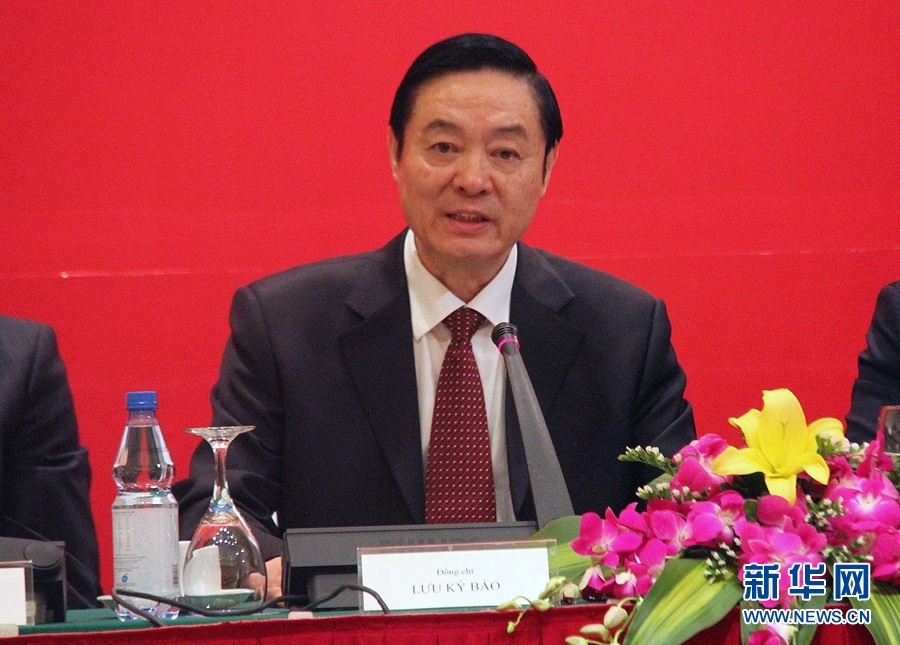 12月23日,在越南首都河內(nèi),中共中央政治局委員、中央書記處書記、中宣部部長(zhǎng)劉奇葆在第十二次中越兩黨理論研討會(huì)開幕式上作主旨報(bào)告?! ⌒氯A社記者樂艷娜攝