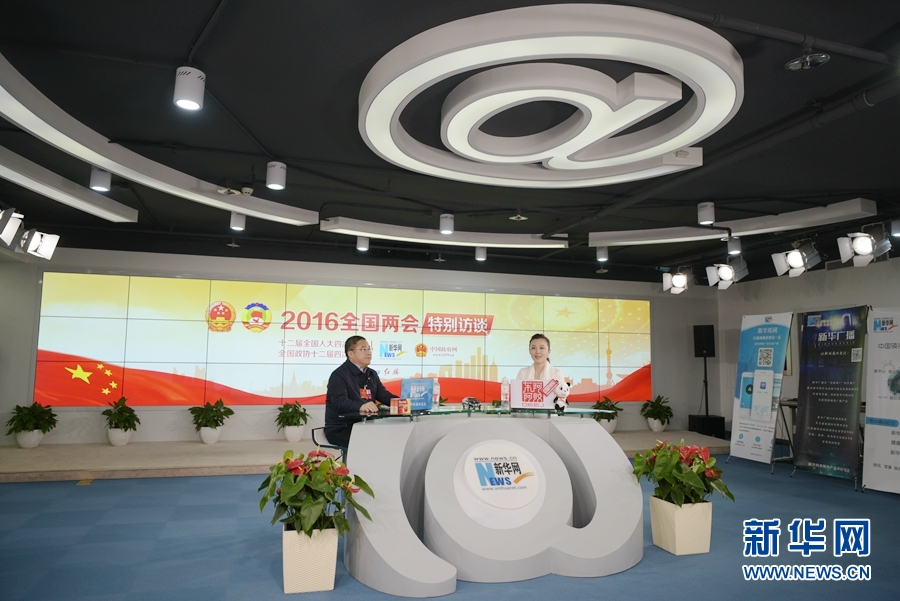2016年3月12日,全國(guó)人大代表、正邦集團(tuán)董事局主席、總裁林印孫做客新華網(wǎng)兩會(huì)訪談直播間。圖為訪談現(xiàn)場(chǎng)。新華網(wǎng) 郭小天 攝