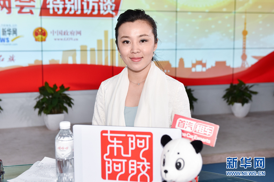 3月12日,全國(guó)人大代表,運(yùn)城市市長(zhǎng)王清憲做客新華網(wǎng)2016全國(guó)兩會(huì)特別訪談,與新華網(wǎng)網(wǎng)友在線交流。圖為新華網(wǎng)主持人張姣。新華網(wǎng) 付宇鵬 攝