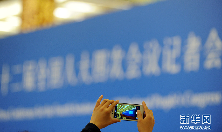 3月16日上午,國務院總理李克強在人民大會堂三樓金色大廳會見采訪十二屆全國人大四次會議的中外記者并回答記者提出的問題。圖為記者在拍照。新華網/中國政府網 陳競超 攝