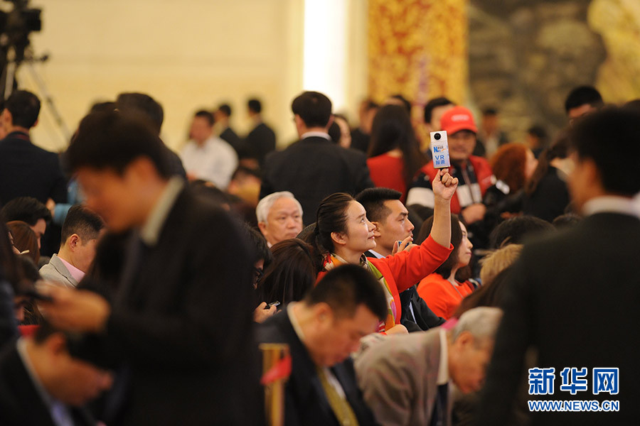 3月16日上午,國(guó)務(wù)院總理李克強(qiáng)在人民大會(huì)堂三樓金色大廳會(huì)見采訪十二屆全國(guó)人大四次會(huì)議的中外記者并回答記者提出的問題。圖為新華網(wǎng)VR報(bào)道總理記者會(huì)。新華網(wǎng)/中國(guó)政府網(wǎng) 陳杰攝