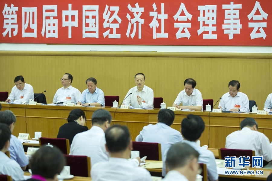 6月19日,中國(guó)經(jīng)濟(jì)社會(huì)理事會(huì)四屆四次會(huì)議在北京舉行。中共中央書(shū)記處書(shū)記、全國(guó)政協(xié)副主席、中國(guó)經(jīng)濟(jì)社會(huì)理事會(huì)主席杜青林出席并講話(huà)。新華社記者崔新鈺攝