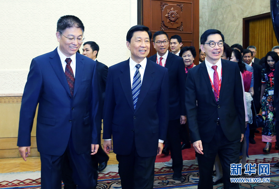 6月27日,國家副主席李源潮在北京會(huì)見以李秀恒為團(tuán)長的香港中華廠商聯(lián)合會(huì)訪京團(tuán)。 新華社記者 姚大偉 攝
