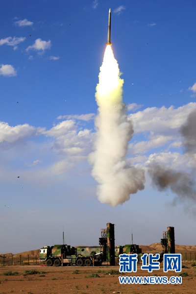 空軍地空導(dǎo)彈兵第二營在執(zhí)行“藍(lán)盾”演習(xí)任務(wù)中進(jìn)行實(shí)彈發(fā)射(2016年7月14日攝)。新華社發(fā)