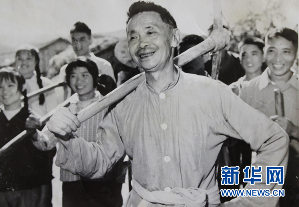 甘祖昌將軍(前)參加生產(chǎn)勞動(dòng)(資料圖片)。新華社發(fā)