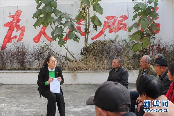 十九大代表、山東省棗莊市山亭區(qū)鳧城鎮(zhèn)千佛崖村黨支部書記李晨(左一)在村委會(huì)宣講十九大精神(10月26日攝)。新華社發(fā)(宋偉攝)