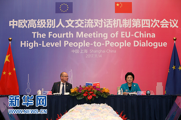 11月14日,國(guó)務(wù)院副總理劉延?xùn)|與歐盟委員會(huì)教育、文化、青年和體育委員瑙夫勞契奇作為機(jī)制雙方主席在上海共同主持中歐高級(jí)別人文交流對(duì)話(huà)機(jī)制第四次會(huì)議。新華社記者 劉穎 攝