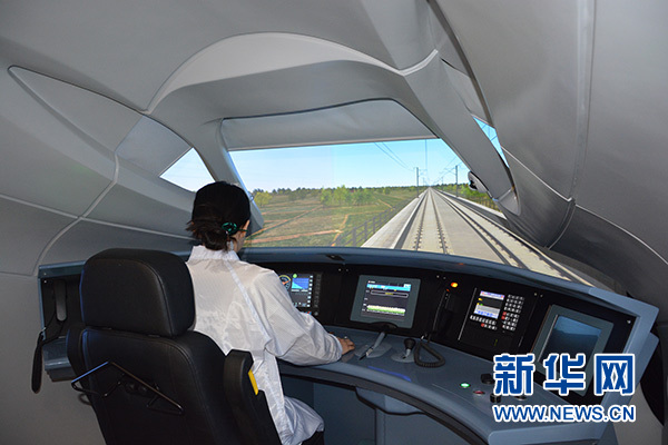 在中國通號CTCS-3實驗室體驗高鐵貼地“飛行”。據(jù)工作人員介紹,該實驗室采用半實物仿真建模方法,通過上萬公里高鐵工程的現(xiàn)場驗證,仿真平臺的可信度達到國際一流。新華網(wǎng)陳淑君攝