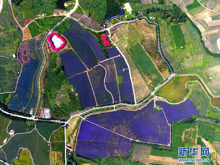 這是5月26日航拍的廣西忻城縣薰衣草莊園。通過(guò)農(nóng)業(yè)、文化、旅游的深度融合,從農(nóng)業(yè)供給側(cè)改革上精準(zhǔn)發(fā)力,忻城走出了一條以農(nóng)業(yè)產(chǎn)業(yè)創(chuàng)新帶動(dòng)第三產(chǎn)業(yè)發(fā)展的道路。新華社記者 黃孝邦 攝