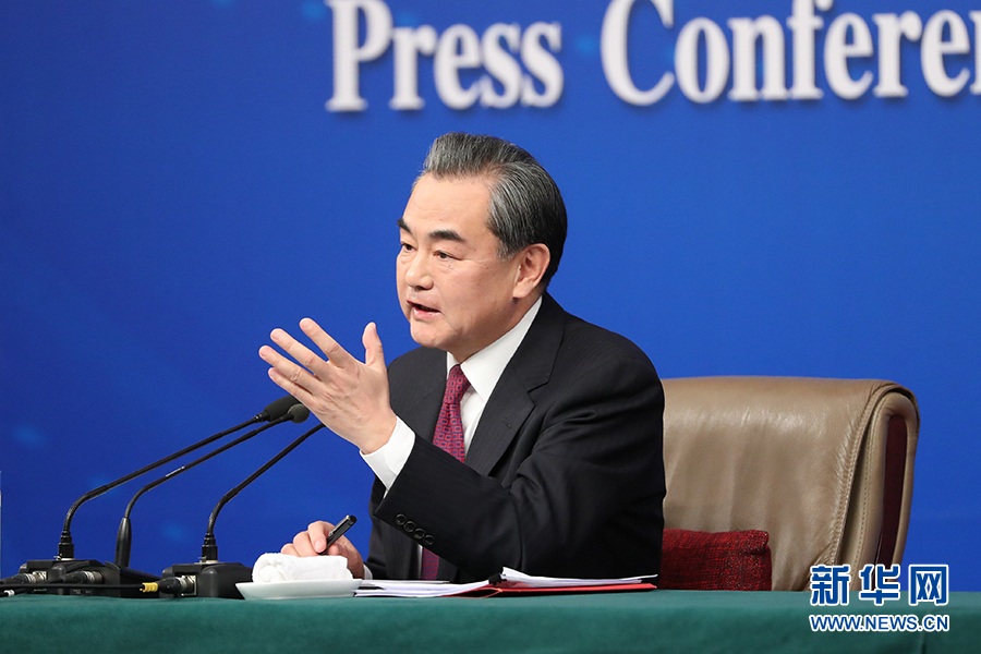 十二屆全國人大五次會議新聞中心于3月8日(星期三)10時(shí)在梅地亞中心多功能廳舉行記者會,邀請外交部部長王毅就“中國的外交政策和對外關(guān)系”的相關(guān)問題回答中外記者的提問。圖為外交部部長王毅回答中外記者提問。新華網(wǎng)/中國政府網(wǎng) 孫韜 攝