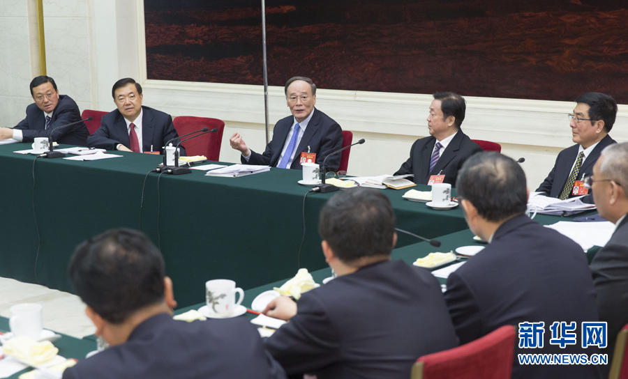3月10日,中共中央政治局常委、中央紀(jì)委書記王岐山參加十二屆全國(guó)人大五次會(huì)議甘肅代表團(tuán)的審議。 新華社記者 崔新鈺 攝