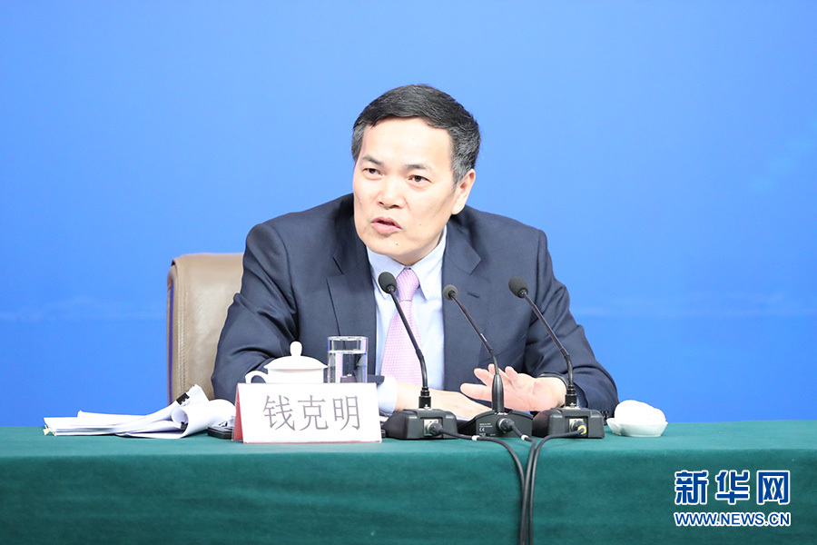 3月11日,十二屆全國(guó)人大五次會(huì)議新聞中心舉行記者會(huì),主題是“改革開放調(diào)結(jié)構(gòu) 創(chuàng)新驅(qū)動(dòng)促發(fā)展”,商務(wù)部部長(zhǎng)鐘山、副部長(zhǎng)王受文、副部長(zhǎng)錢克明出席并回答中外記者的提問。圖為商務(wù)部副部長(zhǎng)錢克明回答記者提問。 新華網(wǎng)/中國(guó)政府網(wǎng) 傅義洲 攝