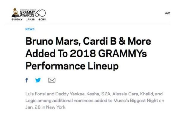 2018格萊美頒獎(jiǎng)典禮將從洛杉磯移師紐約