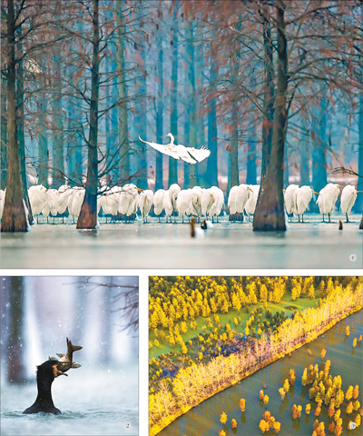 30多年過去,超千畝的池杉林早已扎根在這湖面上,形成了極為震撼的“水上森林”,不僅留住了水土,也引來眾多鳥類?!罢玖⒃诔厣贾︻^的是野生鸕鶿,這也是濕地最多的鳥類。野鴨、夜鷺、牛背鷺等也十分常見?!眮戆部h雷官鎮(zhèn)黨委書記程永政說,濕地內(nèi)共有鳥類98種,而植物及魚類、兩爬類也十分豐富,從而構(gòu)成了一個(gè)完整的生態(tài)系統(tǒng)。