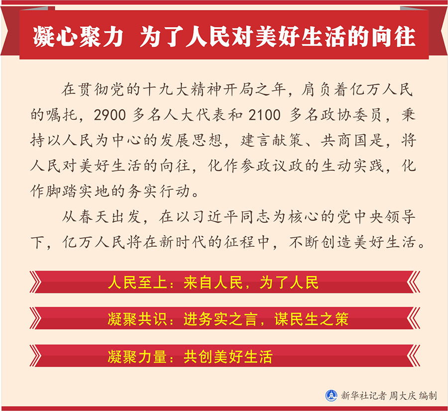 在貫徹黨的十九大精神開局之年,肩負著億萬人民的囑托,2900多名人大代表和2100多名政協(xié)委員,秉持以人民為中心的發(fā)展思想,建言獻策、共商國是,將人民對美好生活的向往,化作參政議政的生動實踐,化作腳踏實地的務實行動。