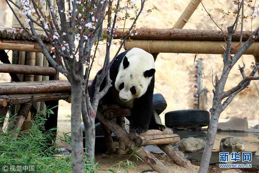 濟南:大熊貓園內(nèi)散步盡享美好春天