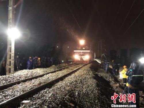圖為14日凌晨首趟列車39911次通過塌陷區(qū)段 呂恩超 攝