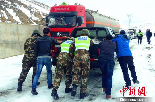 4月15日,受強冷空氣影響,西藏藏東南區(qū)域普降暴雪,致使川藏線昌都市左貢縣境內(nèi)東達(dá)山段交通中斷,造成600余臺車輛滯留。