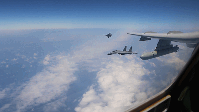 26日上午,人民空軍多型殲擊機(jī)、多型預(yù)警機(jī)、多型偵察機(jī)和轟—6K戰(zhàn)機(jī),從空軍多個(gè)機(jī)場(chǎng)起飛,成體系開展海上方向?qū)崙?zhàn)化軍事訓(xùn)練。轟—6K等多型戰(zhàn)機(jī)編隊(duì)飛越宮古海峽和巴士海峽,實(shí)施了“繞島巡航”訓(xùn)練課題。