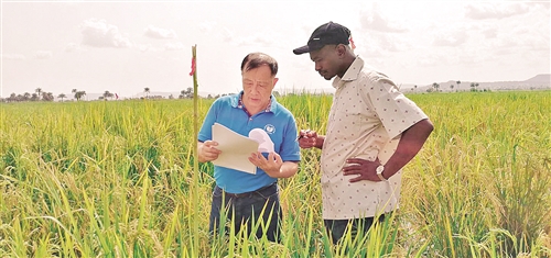 黎志康研究員(左)在田間指導(dǎo)水稻育種。記者 常理 攝