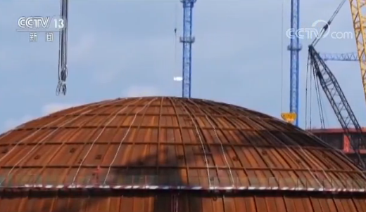 央視記者 李廈:我現(xiàn)在是在廣西防城港核電站華龍一號(hào)機(jī)組的施工現(xiàn)場(chǎng),我身后這個(gè)龐然大物就是即將進(jìn)行吊裝的華龍一號(hào)機(jī)組的穹頂,它的體積十分的巨大,直徑達(dá)到了45米,起吊重量超過了260噸,就是這么一個(gè)大家伙,它即將從這里起吊,將吊裝到在我們不遠(yuǎn)處高度約45米的核島廠房的頂部,這也標(biāo)志著華龍一號(hào)英國(guó)示范項(xiàng)目將進(jìn)入到新的階段。