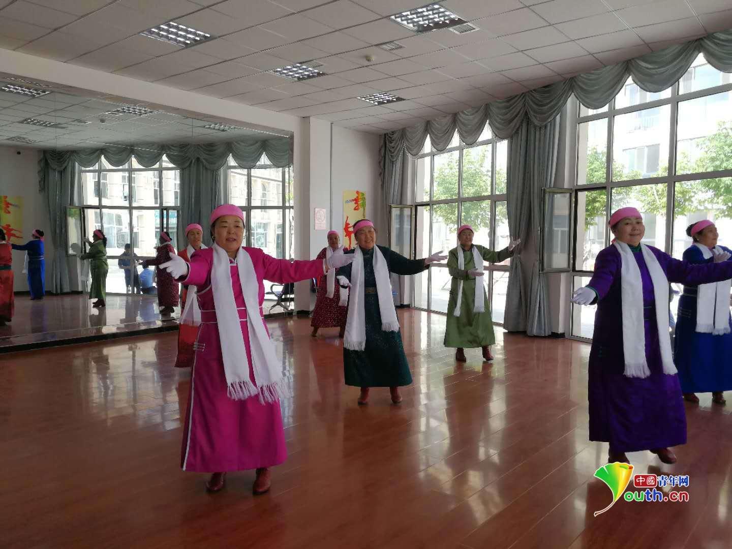 愛祺樂牧民養(yǎng)老園區(qū)內(nèi)的老人們在進行歌舞表演。中國青年網(wǎng)記者王曉蕓 攝
