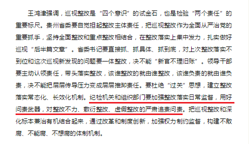 巡視發(fā)現(xiàn)問題的目的是解決問題,發(fā)現(xiàn)問題不解決,比不巡視的效果還壞!本輪巡視,中央巡視組把十八屆巡視整改情況作為巡視監(jiān)督重點,對照巡視報告、反饋意見以及被巡視黨組織整改報告,有重點地監(jiān)督檢查,看巡視發(fā)現(xiàn)的問題是否整改到位,有沒有報假賬、做表面文章;巡視移交的問題線索是否認真處置、核查,巡視反映強烈的領(lǐng)導(dǎo)干部是否依然有反映或者有新的反映。剛剛公布的巡視反饋情況顯示,一些地方“對十八屆中央巡視發(fā)現(xiàn)的‘三超兩亂’等問題整改落實不夠到位”“上次中央巡視整改不嚴(yán)不實,存在掛空檔、走過場現(xiàn)象”“巡視整改存在做表面文章現(xiàn)象”。中央巡視組組長在代表中央巡視組反饋巡視情況時也給出明確意見,要求“統(tǒng)籌抓好上次巡視整改不到位和本次巡視指出問題的整改”。