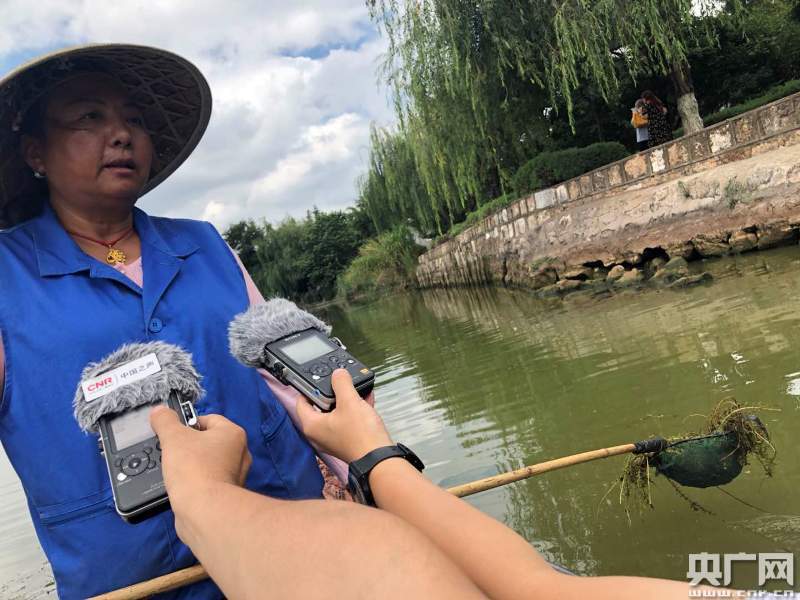 李云麗說(shuō),每天都要打撈三四船垃圾。水草多,青苔多。如果水草死了,就對(duì)水有污染。