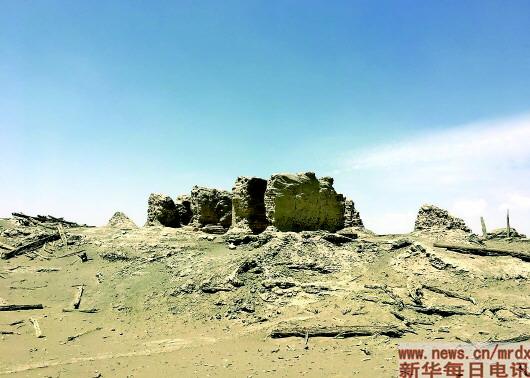 ▲樓蘭遺址內(nèi)的“三間房”(研究認(rèn)為是當(dāng)時(shí)的官衙)。