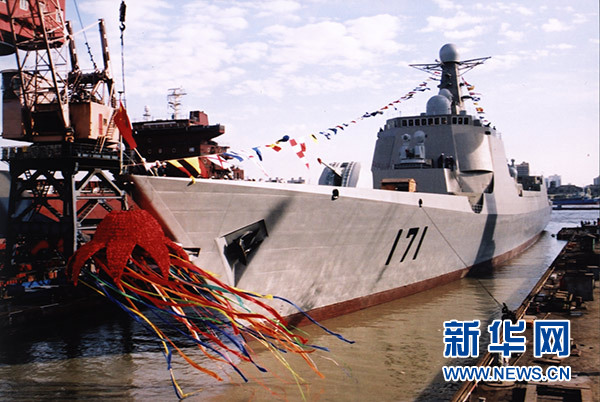 2003年10月23日,海口艦在上海某船廠下水(資料照片)。 新華社發(fā)