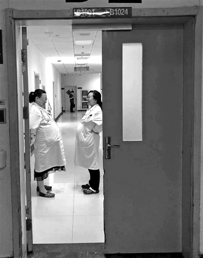距離預產期只有十天的準媽媽醫(yī)生姚芳蘭和李曉青,