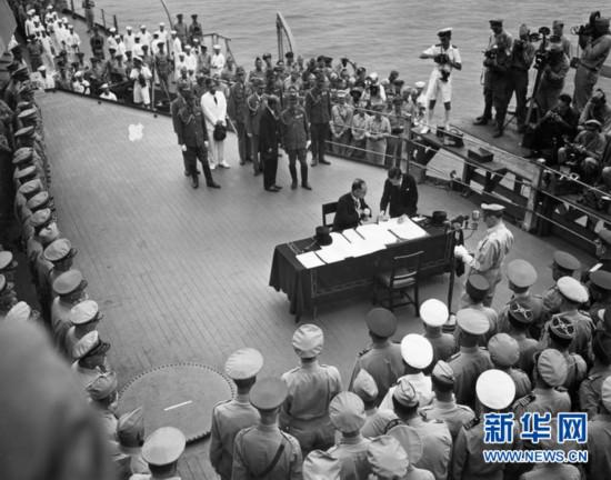 在包括中國在內(nèi)的9個(gè)受降國代表的注視下