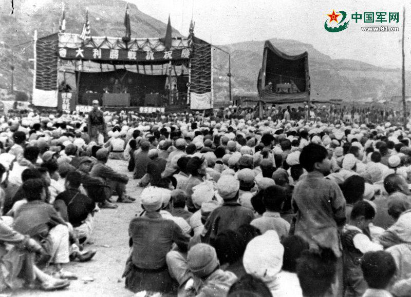 圖示:延安軍民慶祝抗戰(zhàn)勝利。
