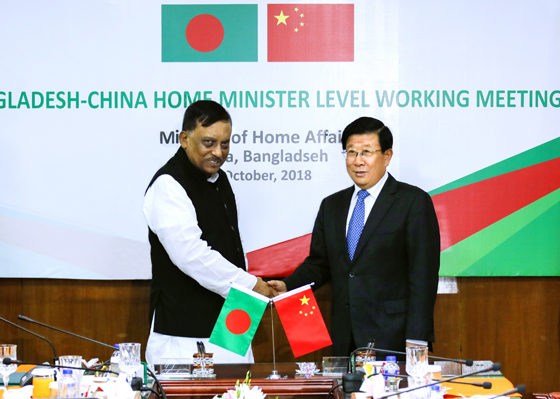 10月26日,國(guó)務(wù)委員、公安部部長(zhǎng)趙克志在達(dá)卡與孟加拉國(guó)內(nèi)政部部長(zhǎng)阿薩杜扎曼·汗舉行會(huì)談。