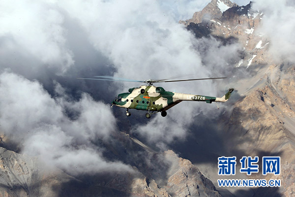 2016年7月20日,新疆軍區(qū)某陸航旅運輸直升機一營飛行員在高海拔邊防線執(zhí)行巡邏任務(wù)。新華社發(fā)(吳世科 攝)